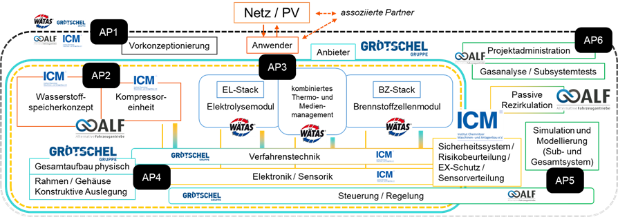 Dies soll mit einem Effizienzmodul ausgestattet sein, welches die notwendige Sensorik und Aktorik enthält, um die Betriebsbedingungen des Brennstoffzellensystems zu optimieren und somit den Wasserstoffverbrauch zu minimieren. Durch den modularen Aufbau des Effizienzmoduls kann dieses, ohne zusätzlichen Entwicklungsaufwand, kostenoptimal für verschiedene Einsatzszenarien konfiguriert werden.