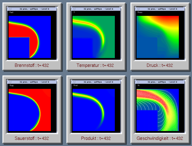 Simulation of combustion - different values at t = 4.32 s
