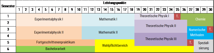 Aus einem breiten physikalischen und nichtphysikalischen Angebot sind in der Regel 3 Module zu wählen.