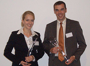 Die Preisträger Andy Böhme und Franziska Fäthe bei der Verleihung des Preises im Rahmen eines Workshops des Netzwerks für Finanzstudien Sachsen. Foto: Stephan Schnorr |