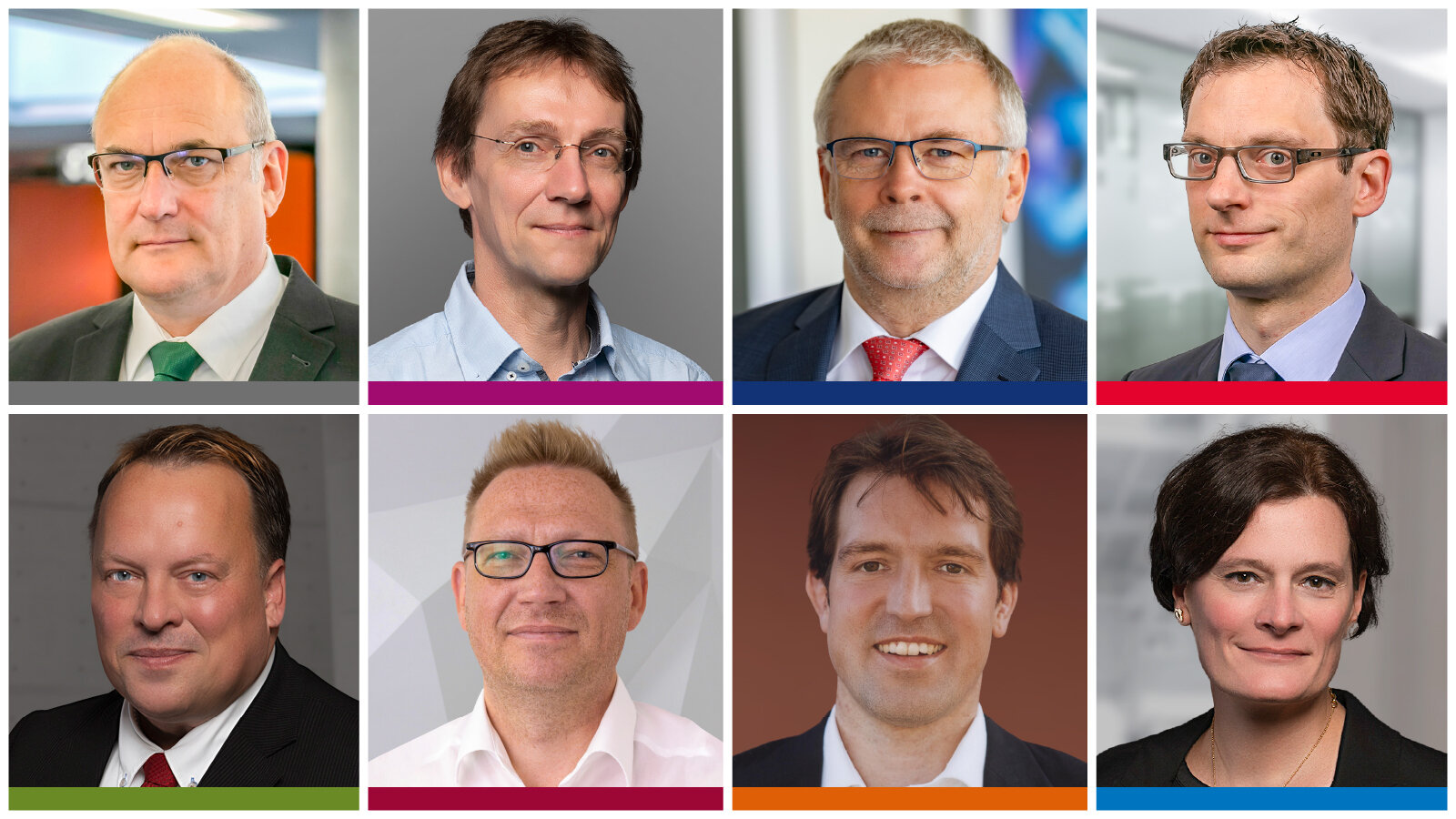 Eight deans of Chemnitz University of Technology head their faculties: Prof. Dr. Thomas Seyller, Prof. Dr. Daniel Potts, Prof. Dr. Andreas Schubert and Prof. Dr. Stefan Streif (from top left) as well as Prof. Dr. Martin Gaedke, Prof. Dr. Stefan Hüsig, Prof. Dr. Eric Linhart and Prof. Dr. Anja Strobel (from bottom left). Photos: Jacob Müller, Philip Hiersemann, Lili Hofmann, private, Photo montage: Jacob Müller