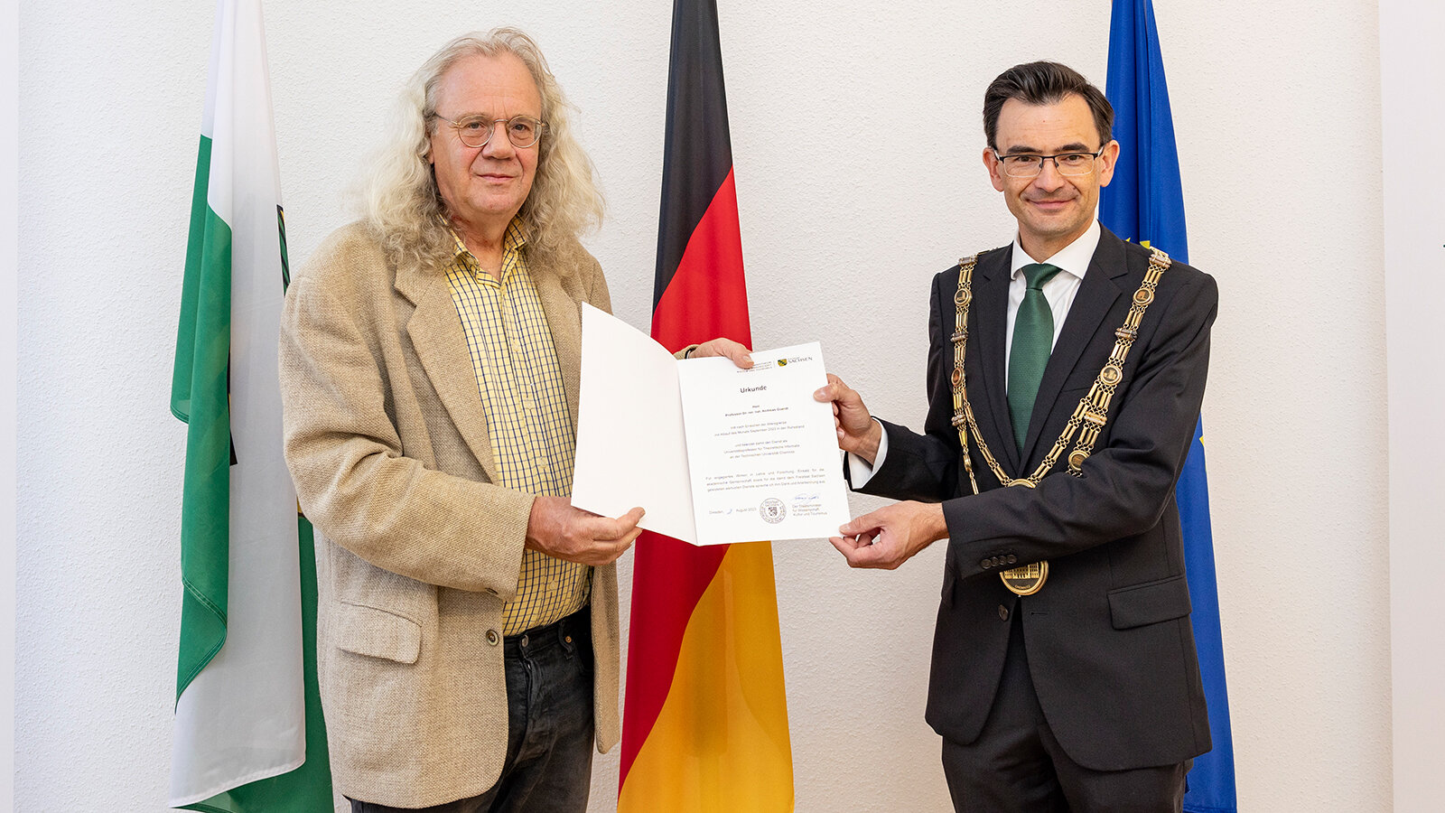 Nach seiner Lehr- und Forschungstätigkeit an der Technischen Universität Chemnitz (TUC) tritt der Informatiker Prof. Dr. Andreas Goerdt, langjähriger Inhaber der Professur Theoretische Informatik der TUC, in den Ruhestand ein. Die offizielle Überreichung der Dankesurkunde durch den Rektor der TUC, Prof. Dr. Gerd Strohmeier, erfolgte am 5. September 2023.