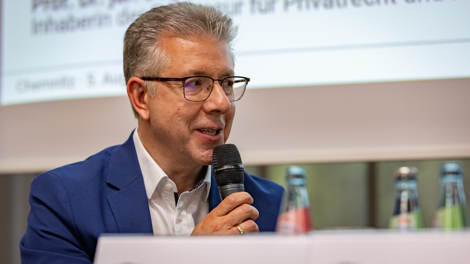 Dr. Axel Schweppe, Vizepräsident der Rechtsanwaltskammer Sachsen: „An der derzeit einzigen juristischen Fakultät im Freistaat Sachsen an der Universität Leipzig können bis zu 750 Studierende ausgebildet werden, von denen in den letzten Jahren noch nicht einmal die Hälfte die staatliche Pflichtfachprüfung absolviert haben. Die Quote derjenigen, die den Vorbereitungsdienst – also das Referendariat – im Freistaat Sachsen begonnen haben, lag noch mal deutlich darunter. Da stellt sich die Frage, wie in Zukunft für gut vier Millionen Sachsen Zugang zum Recht gewährleistet werden kann. Vor diesem Hintergrund unterstützt die Rechtsanwaltskammer Sachsen nachdrücklich die Initiative der TU Chemnitz, das Fächerspektrum um die Rechtswissenschaften zu erweitern.“ Foto: Jacob Müller -