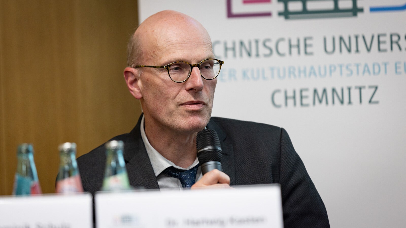 Prof. Dr. Gerd Strohmeier, Rektor der TU Chemnitz, verdeutlichte, dass zahlreiche Argumente für die Einrichtung des Studienfachs Rechtswissenschaften an der TU Chemnitz sprechen. Foto: Jacob Müller -