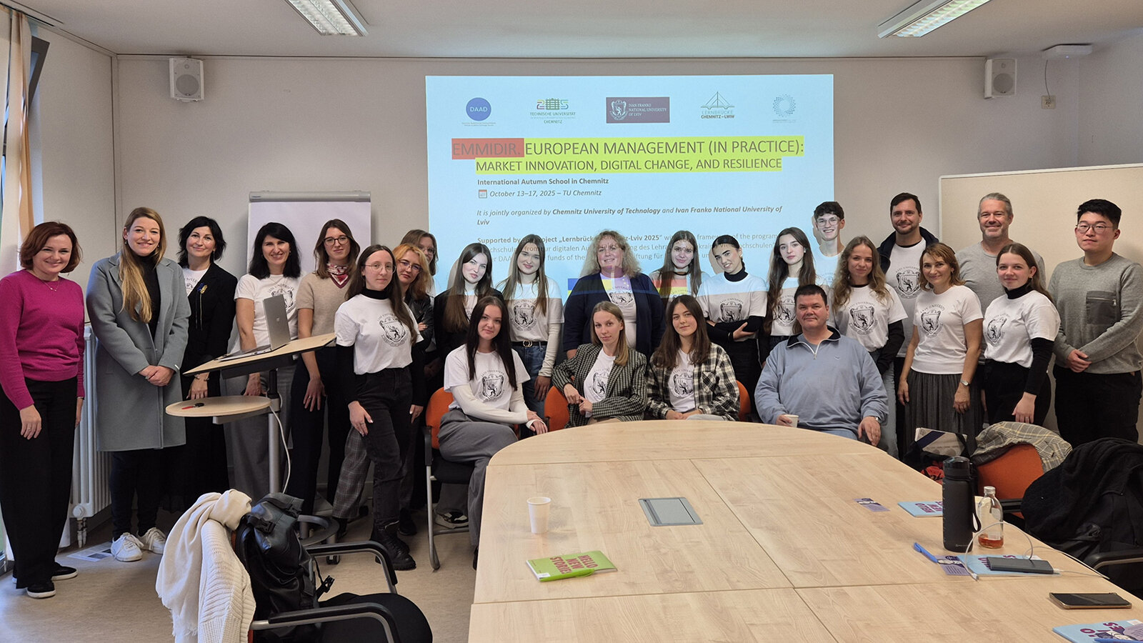 Vom 13. bis 17. Oktober 2025 fand die zweite internationale Summer School an der Fakultät für Wirtschaftswissenschaften der TU Chemnitz statt: „European Management (in Practice): Market Innovation, Digital Change and Resilience“. Sie brachte 16 Studierende und vier Lehrende der Nationalen Iwan-Franko-Universität Lwiw mit deutschen Wirtschaftsstudierenden und -lehrenden zusammen. Ziel war es, ukrainische Studierende mit den Rahmenbedingungen des europäischen Marktes, Strategien digitaler Transformation und Werkzeugen zur unternehmerischen Resilienz vertraut zu machen. Die Teilnehmenden arbeiteten in gemischten Teams an realen Fallstudien ukrainischer Unternehmen, um Markteintrittsstrategien in Deutschland zu entwickeln und Finanzierungsmodelle zu validieren. Begleitet wurde die Veranstaltung von Lehrenden beider Universitäten, darunter Dr. Julien Bucher, Jun.-Prof. Charlotte Förster und Jörg Müller von der TU Chemnitz und Dr. Marianna Kokhan, Dr. Vira Shevchuk. Dr. Anna Hryshchuk und Dr. Nataliia Danylevych von der Universität Lwiw.