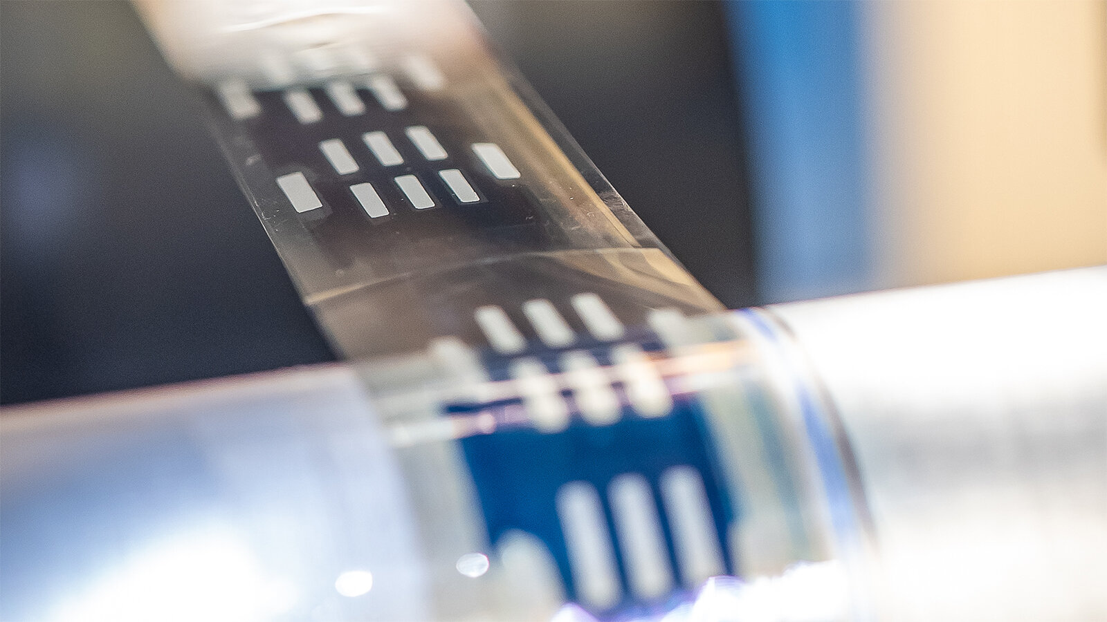 Nach dem Druck liegt eines fertiges Band von Solarzellen vor. Foto: Martin Mellendorf