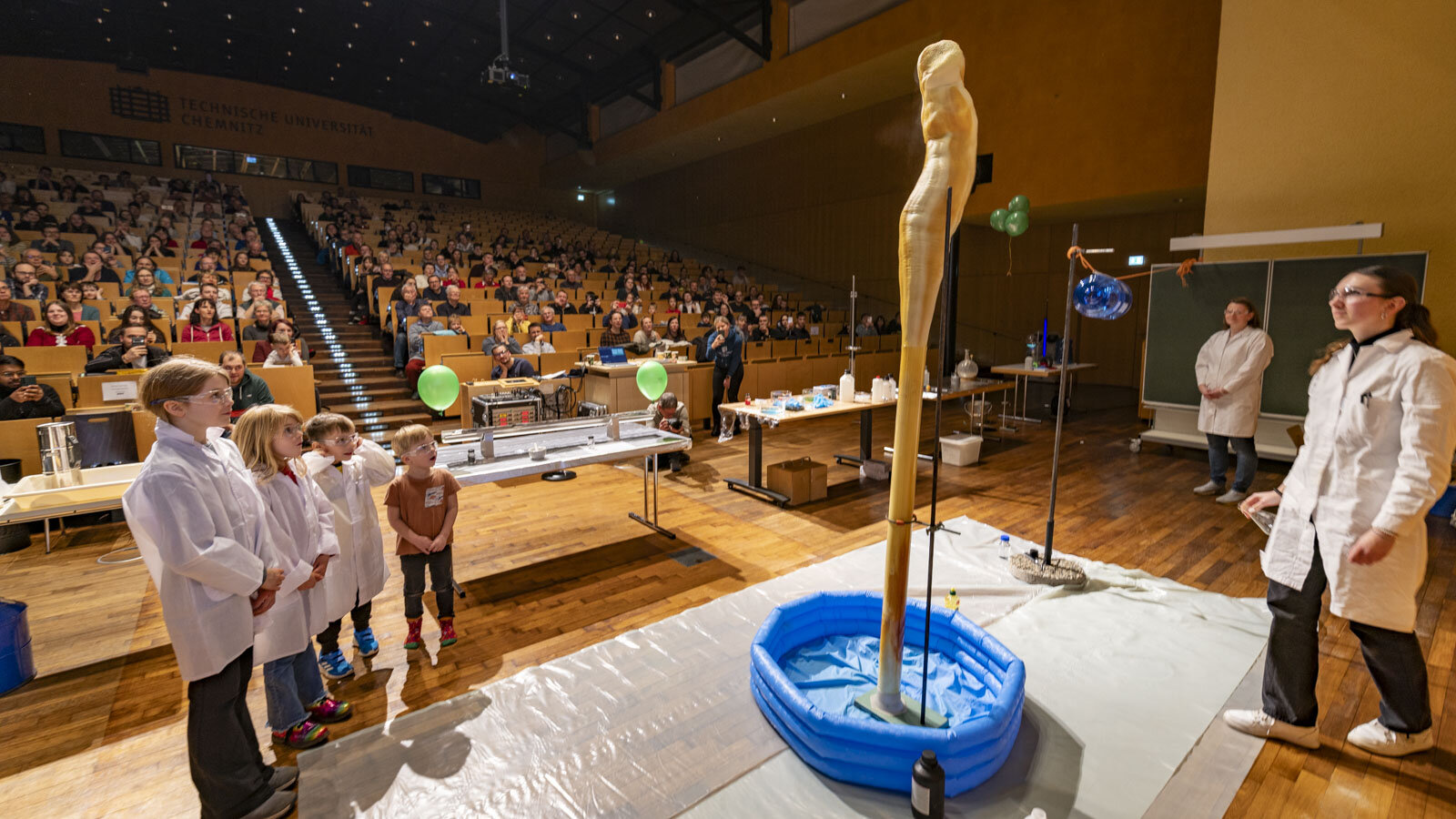 Die Weihnachstvorlesungen der TU Chemnitz sind seit Jahren ein Publikumsliebling. In diesem Jahr können sich die Fans weihnachtlicher Experimente wünschen, was gezeigt werden soll. Foto: Jacob Müller