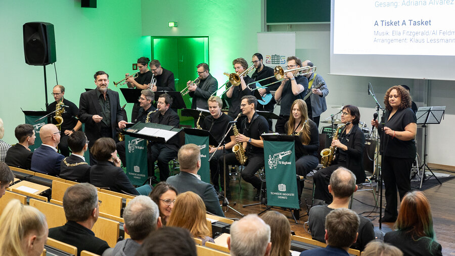 Musikalisch umrahmt wurde die Festveranstaltung von der TU Big Band unter der Leitung von Marc Hartmann. Gesanglich begleitete Adriana Alvarez die Band.