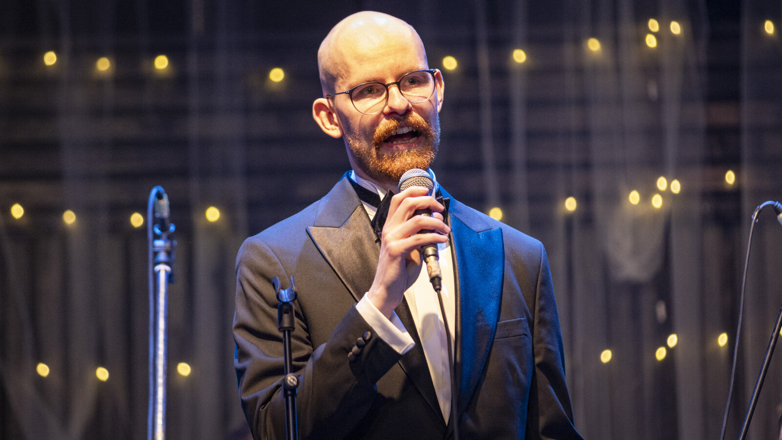 Die Begrüßung erfolgte durch Julius Henning, der sowohl zu den Hauptorganisatoren des „Winterballs“ gehörte als auch im Student_innenrat der TU Chemnitz als Referent tätig ist. Foto: Jacob Müller -