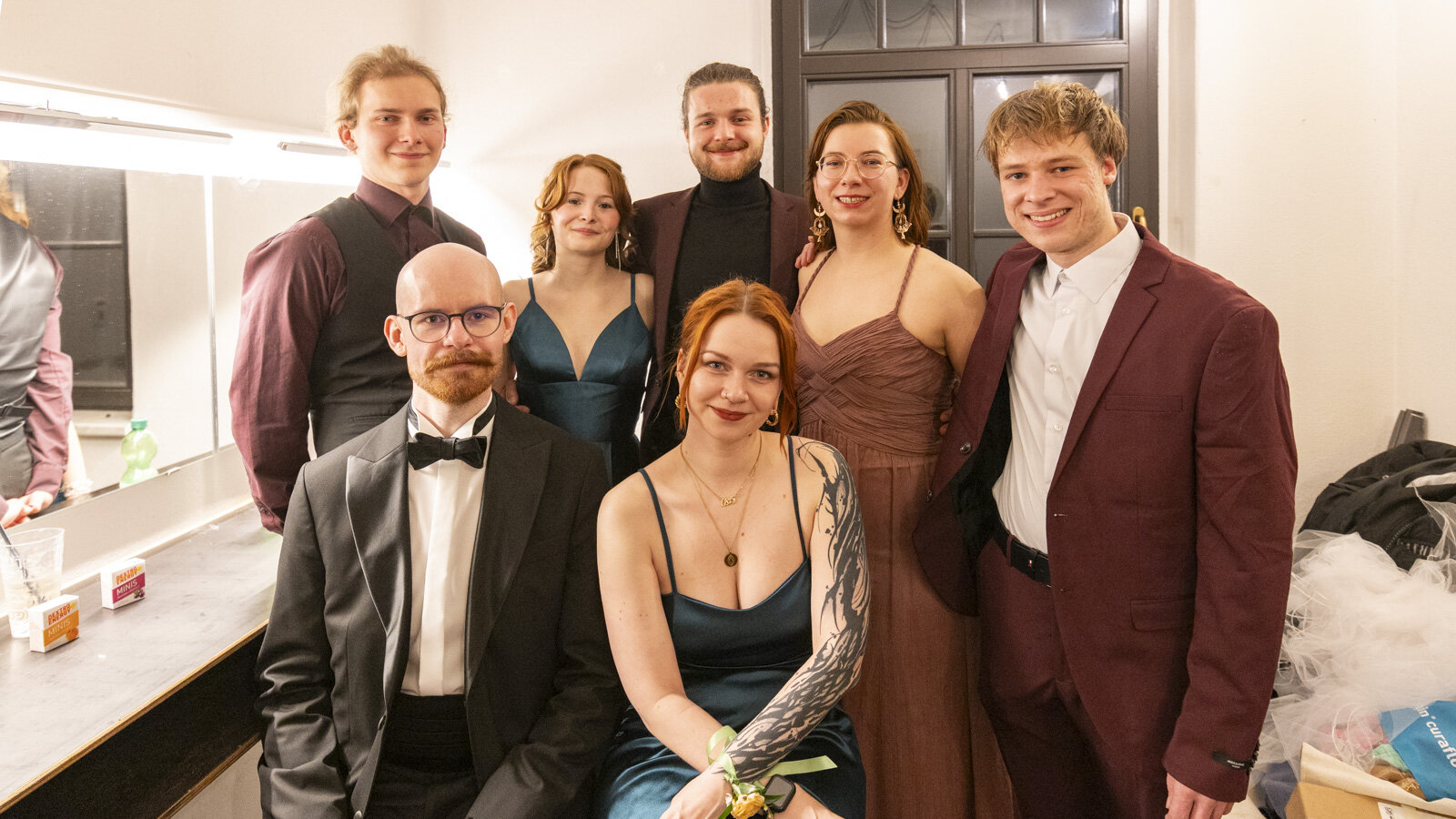 Die Planung des Tanzballs wurde federführend vom Fachschaftsrat der Fakultät Human- und Sozialwissenschaften (FSR HSW) und vom Fachschaftsrat der Philosophischen Fakultät (FSR Phil) übernommen. Im Bild hinten v. l. Mathias Schulz (Bachelorstudiengang Präventions-, Rehabilitations- und Fitnesssport, Mitglied des FSR HSW), Lena Graf (Bachelorstudiengang Pädagogik, Mitglied des FSR Phil), Lukas Kögler (Bachelorstudiengang Soziologie, Mitglied des FSR HSW), Josephin Buchwald (Masterstudiengang Pädagogik, Mitglied des FSR Phil), Fabian Wycisk (Studiengang Psychologie, Mitglied des FSR HSW), vorn v. l. Julius Henning (Masterstudiengang Human Movement Science und Bachelorstudiengang Mathematik, Mitglied des FSR HSW) und Patricia Möller (Masterstudiengang Interkulturelle Germanistik, Mitglied des FSR Phil) Foto: Jacob Müller -