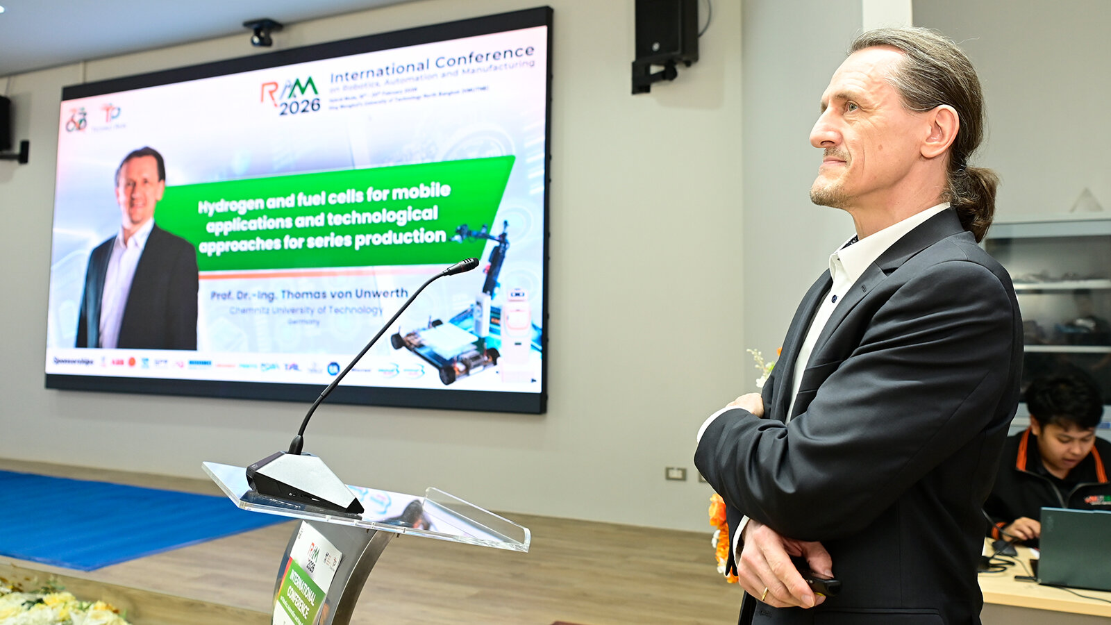 Prof. Dr. Thomas von Unwerth, Prorektor für Transfer und Weiterbildung sowie Inhaber der Professur Alternative Fahrzeugantriebe der TU Chemnitz, referierte auf der internationale Fachkonferenz „RAM’26“ (International Workshop and Conference on Robotics, Automation and Manufacturing). -