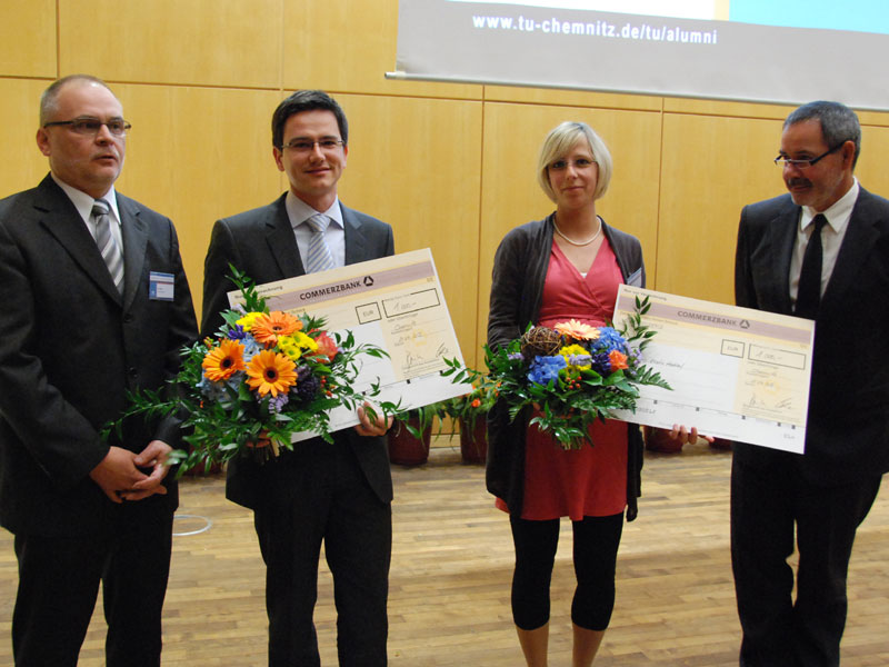 Zwei erfolgreiche Promovenden der TU Chemnitz des vergangenen Jahres sind am 21. April 2012 von der Commerzbank ausgezeichnet worden. Die Preise in Höhe von je 1.000 Euro überreichte Peter Blaha, Prokurist der Filiale Chemnitz der Commerzbank AG, im Rahmen der Feierlichen Absolventenverabschiedung im Zentralen Hörsaal- und Seminargebäude.
