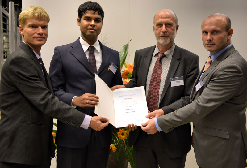 The prize of the German Academic Exchange Service (DAAD) endowed with 1.000 Euro for international students was awarded this year to Adithya Sridhar from India. He studies Micro and Nano Systems and engages voluntarily in the Buddy Program of the International Office as well as in the Club of Cultures.