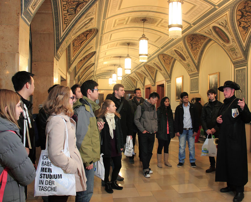 In the Town Hall watchman Stefan Weber gave the students detailed information of this particular building of their new home town. Picture: Micele Ulbricht -