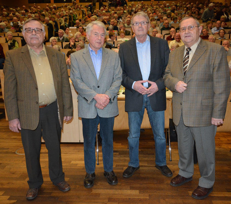 Gleich vier Referenten informierten über die Entwicklung des Unternehmens UNION Werkzeugmaschinen. Unter den Zuhörern im vollbesetzten Hörsaal waren auch zahlreiche ehemalige Mitarbeiter. Foto: Seniorenkolleg