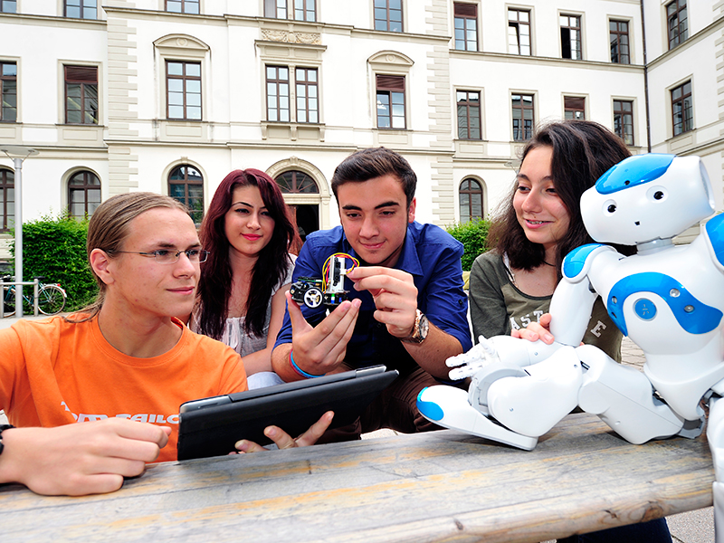 An der Technischen Universität Chemnitz findet vom 26. September bis 4. Oktober 2014 zum ersten Mal eine deutsch-georgisch-balkanische RoboSchool statt. Etwa 20 Schülern der höheren Gymnasialklassen, darunter elf aus dem Ausland, wird zunächst das Handwerkszeug zur Programmierung von Robotern gegeben und die elektrotechnische Basis anschaulich vermittelt. „Damit die Roboter das Universitätsgelände erobern können, tüfteln die Nachwuchsforscher in kleinen Gruppen an ihren Maschinen, entwickeln eigene Prototypen und knüpfen nebenbei länderübergreifende Freundschaften“, sagt Maja Riedel von der Fakultät für Informatik. Bei der RoboSchool kommen die Schüler auch mit dem menschlichen Roboter „NAO“ in Berührung. „Ob man ihn am Kopf streichelt, an den Händen drückt oder sich ihm nur nähert, nach ein paar Programmierungen können die Schüler nach Belieben mit dem Roboter interagieren und sich sogar mit ihm unterhalten“, ergänzt Riedel.