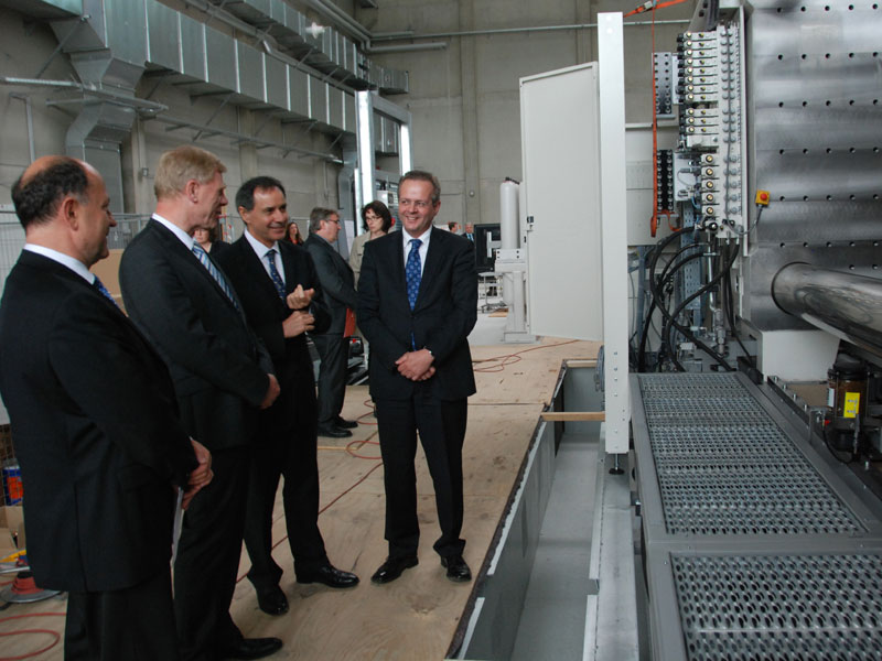 After a nearly one-year building phase, the construction of the MERGE-machine in the new research buildings at the Technische Universität Chemnitz was initiated. On a press tour on June 1st, 2015 Saxony’s Finance Minister Prof. Dr. Georg Unland and the Rector of the Technische Universität Chemnitz, Prof. Dr. Arnold van Zyl, informed attendees about the progress of work at the Cluster of Excellence.