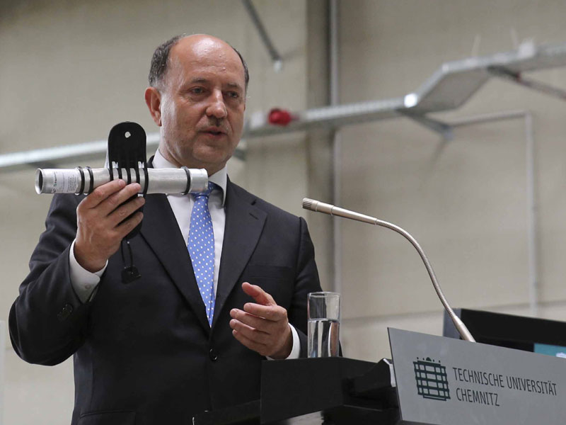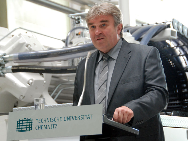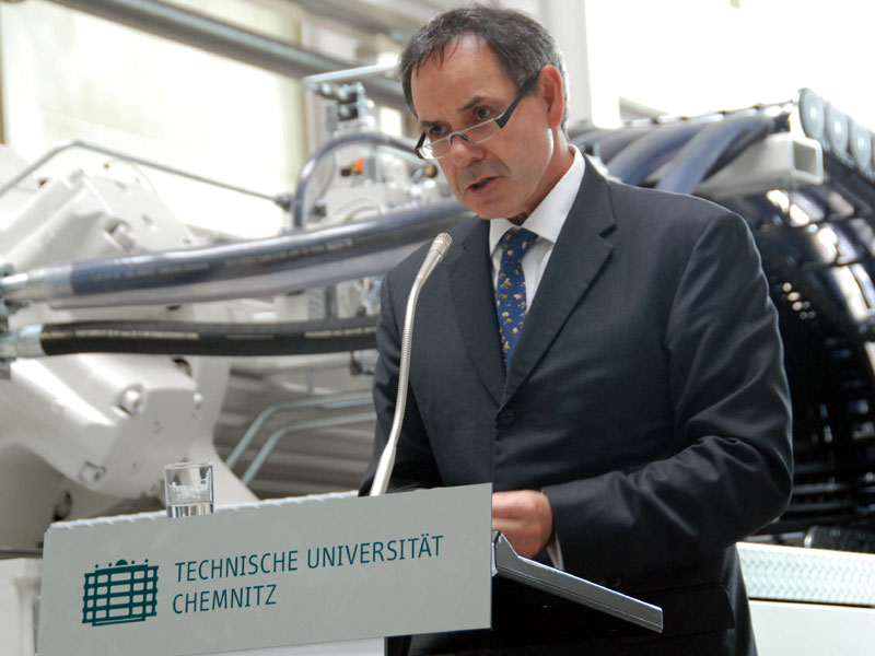 The Rector, Prof. Dr. Arnold van Zyl, stressed the importance of MERGE for research and teaching at the TU Chemnitz. He was also convinced that this investment from the State will, in the medium-term, generate returns from tax revenues of Saxon companies, as the industry is now closely linked to the scientists of the Federal Cluster of Excellence. Photo: Mario Steinebach -