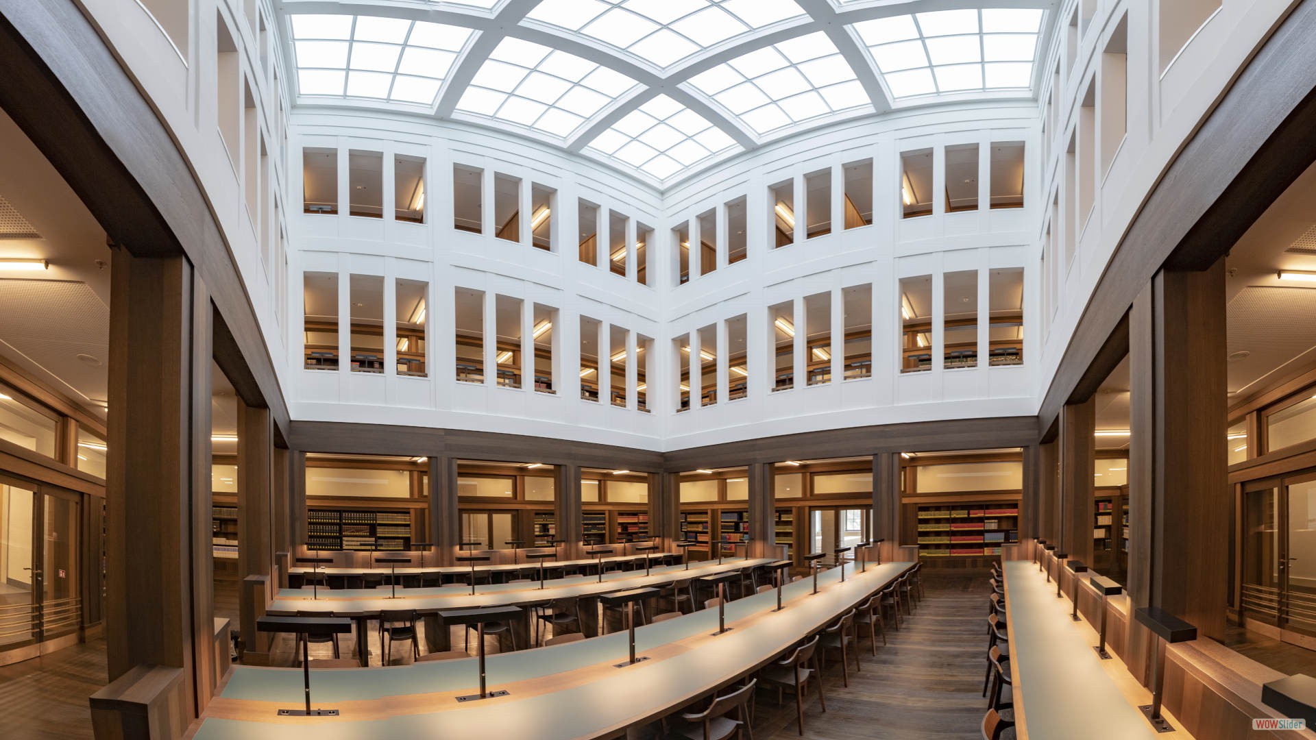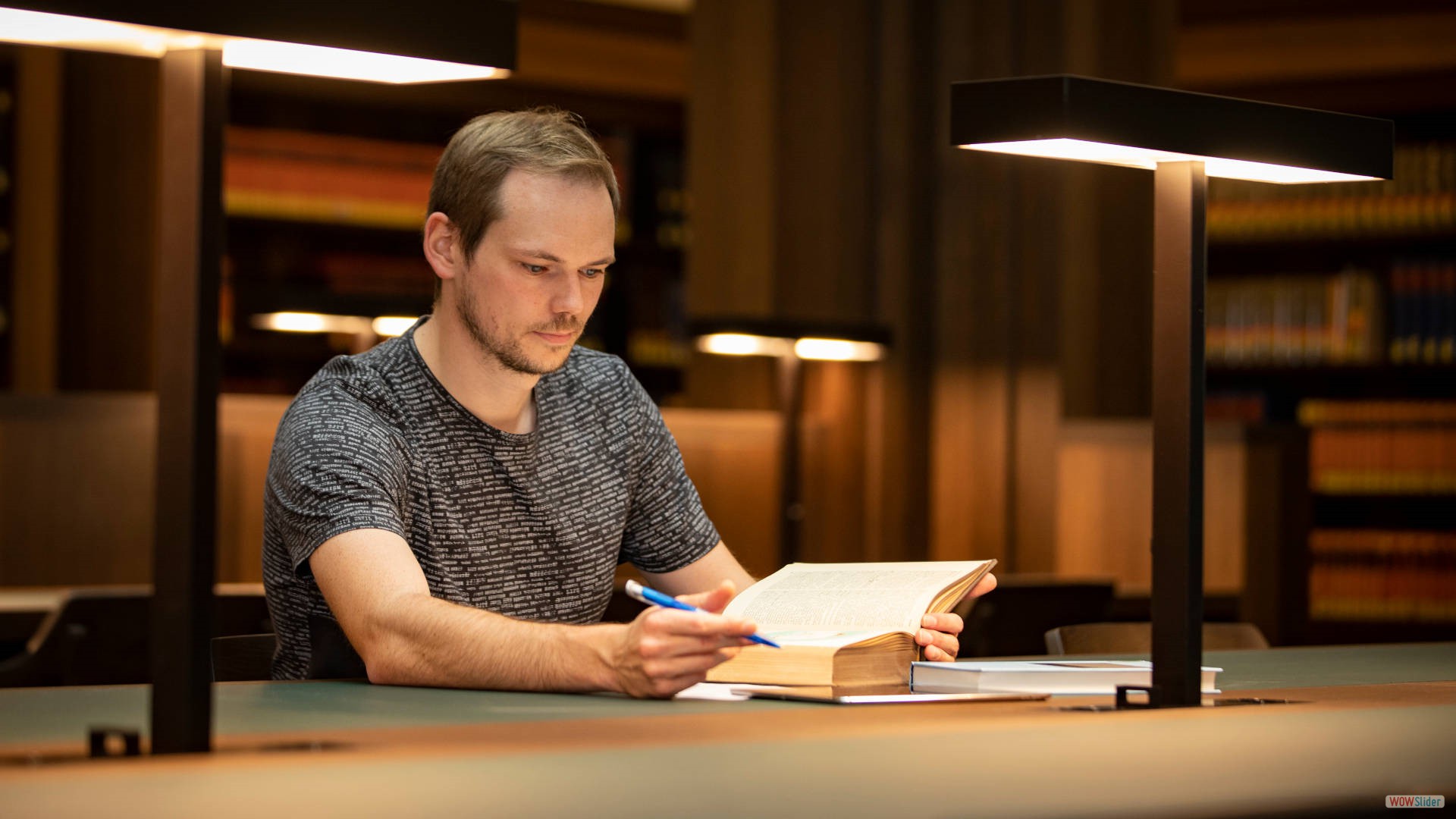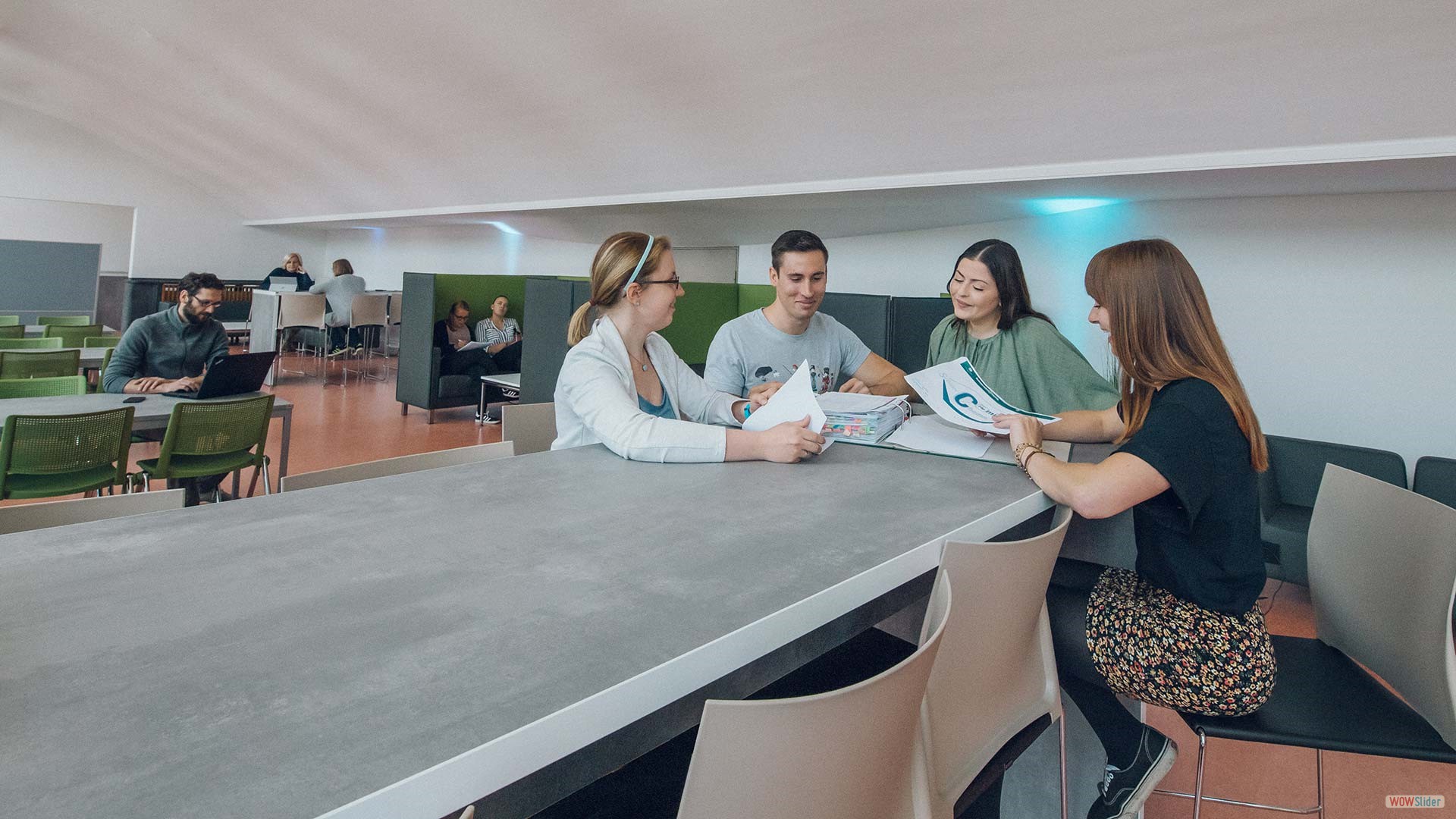 In unserer Universitätsbibliothek findest du stille Einzelarbeitsplätze im Lesesaal, Lesekabinen aber auch gemeinschaftlich zu nutzende Arbeitsplätze. Zudem ermöglicht künftig ein Lesegarten hinter dem Gebäude das Lernen im Freien.