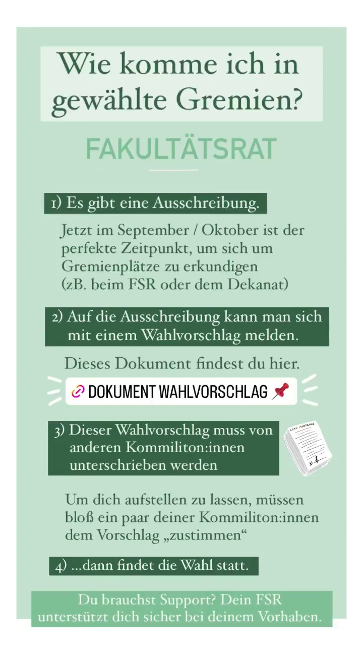 Du möchtest aus erster Hand erfahren, was als Studierende*r im Fakultätsrat auf dich zukommt?