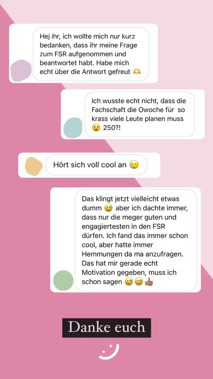 Die meisten Fachschaftsräte bieten vorab eine „Schnuppersitzung“ an, in der ihr Fragen stellen und ihr euch mit den Aufgaben des FSR vertraut machen könnt.