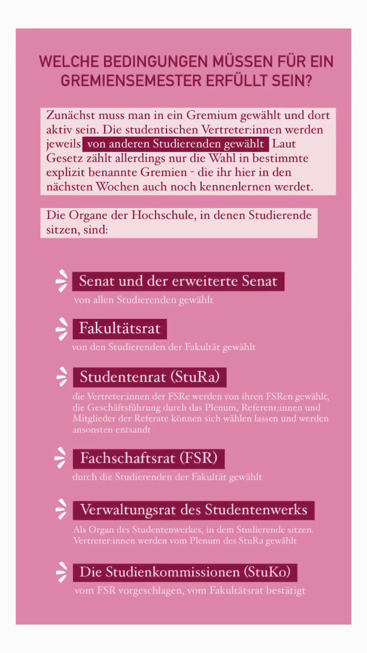 Dein FSR und auch der StuRa kann dich bei Fragen unterstützen.