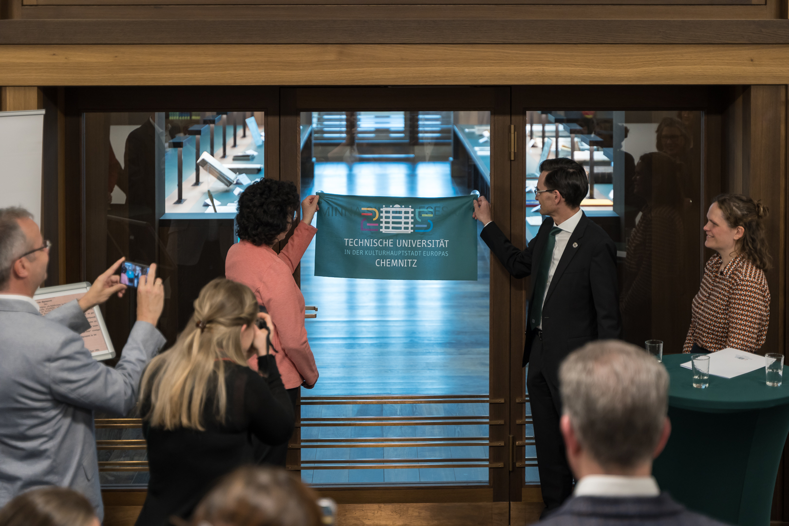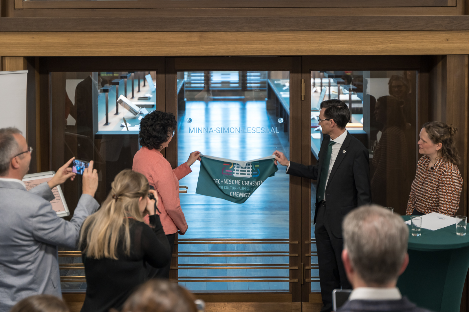 Feierliche Einweihung durch Frau Malz (Direktorin der UB Chemnitz) und Prof. Dr. Strohmeier (Rektor der TU Chemnitz). © Tino Riedel -