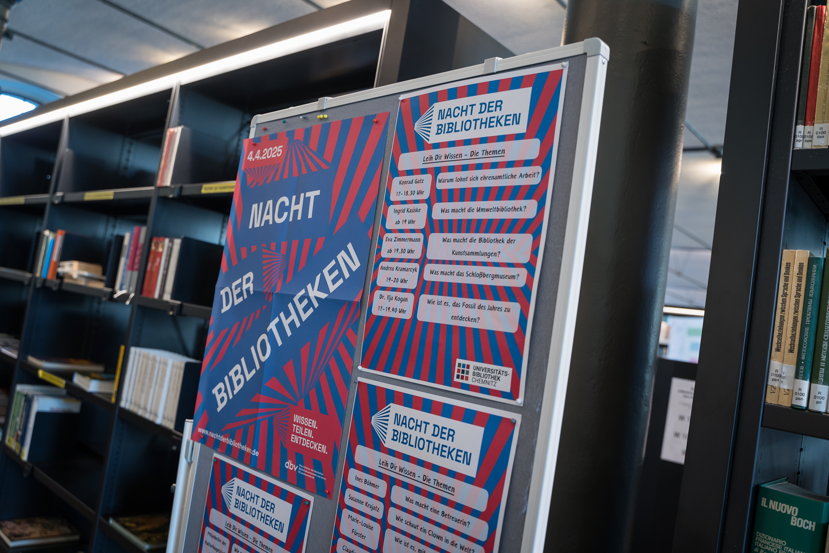 Wir sehen uns am 4. April 2025 bei der Nacht der Bibliotheken! Unter dem Motto Wissen. Teilen. Entdecken.