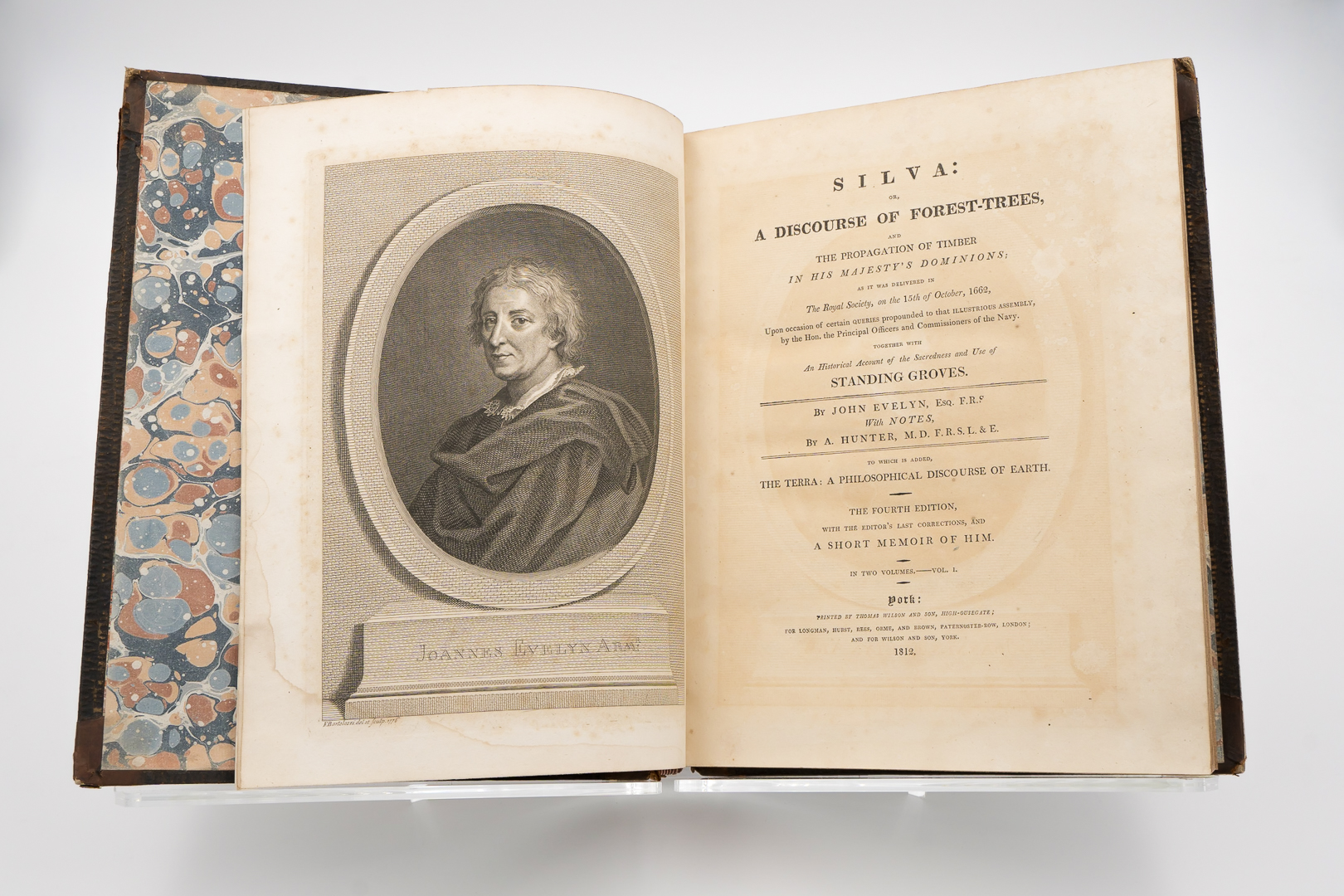 Zum Werk: John Evelyn (1620-1706) war ein englischer Autor, Architekt und Gartenbauer. Er gehörte zu den ersten Mitgliedern der 1660 gegründeten Royal Society. Sein Buch Silva schrieb er als Anregung an Gartenbesitzer, Bäume zu pflanzen, um die englische Flotte mit Bauholz zu versorgen. Bei dem vorliegenden Buch handelt es sich um die 4. Ausgabe des 1662 erschienenen Werkes. Die neueste Auflage stammt von 2021.