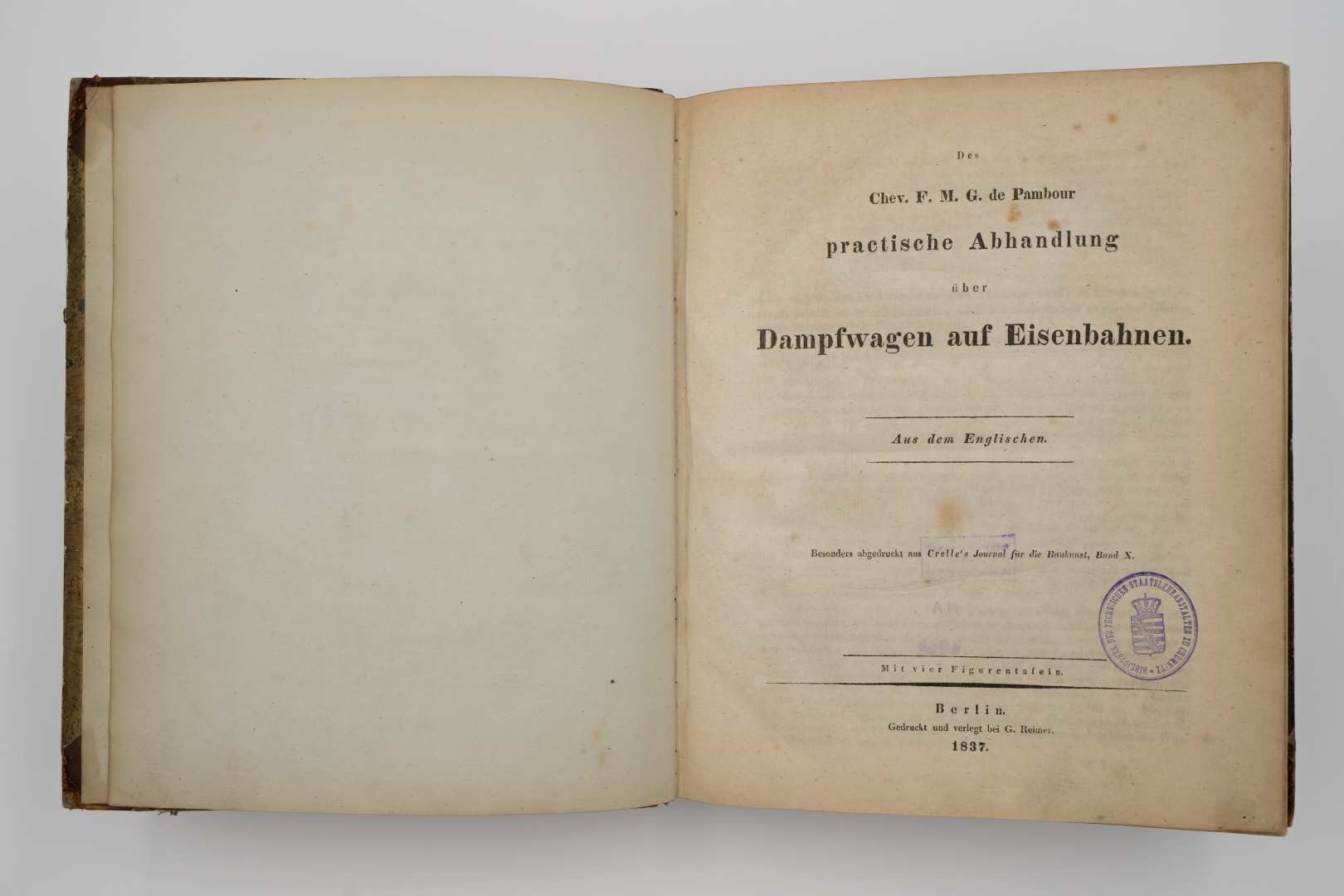 Zum Werk: Guyonneau de Pambour trat nach dem Besuch der Elitehochschule École Polytechnique zunächst in den Militärdienst und avancierte dort bis in den Generalstab. Im Jahre 1828 schied er aus und widmete sich als Privatmann und Ingenieur der Wissenschaft. Mit seinen Abhandlungen über Theorie und Praxis der Dampflokomotiven geriet er in einen Streit mit Fachkollegen, welcher wahrscheinlich der Grund dafür war, dass seine Kandidaturen auf einen Platz in der Académie des Sciences im Zeitraum 1837-1843 gleich dreimal scheiterten.