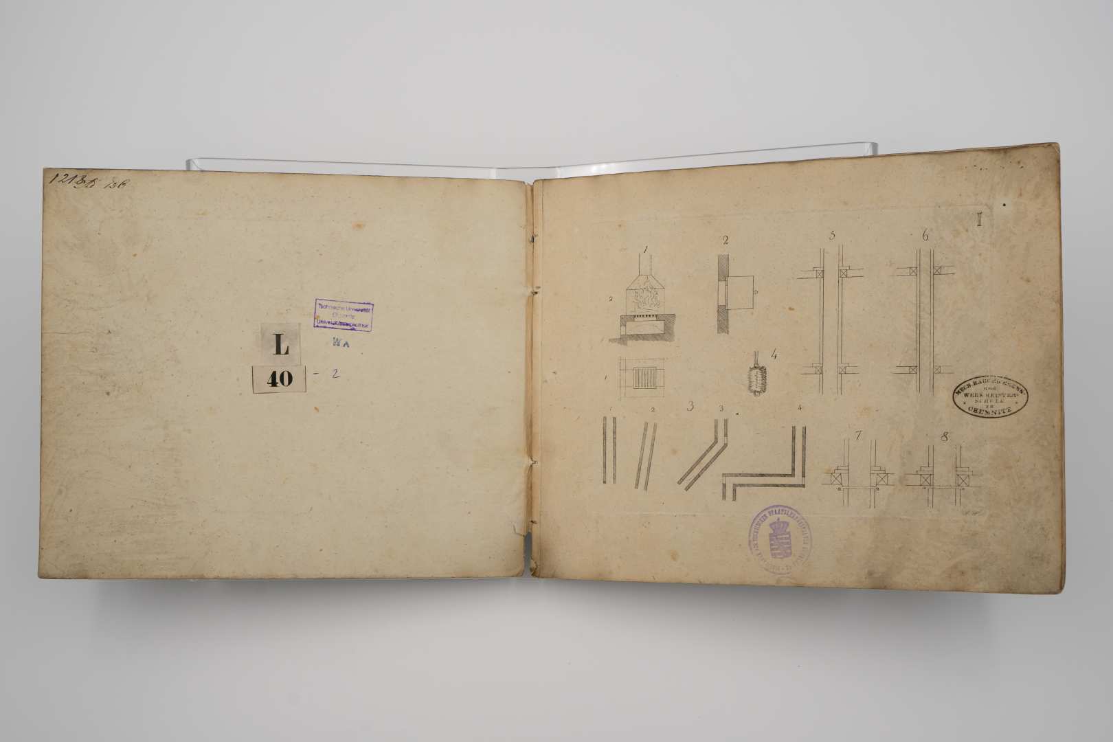 Zum Werk: Karl Marcell Heigelin war ein deutscher Architekt und Architekturtheoretiker. In den Jahren 1820-1822 unternahm er eine ausgedehnte Studienreise, welche ihn nicht nur durch Deutschland, sondern auch durch Frankreich und Italien führte, im Verlauf derer er sich architektonische Anregungen holte. Nach Absolvierung der Staatsprüfung „für bürgerliche und hohe Baukunst“ arbeitete er als Privatdozent und Privatlehrer für Architektur. Da er aufgrund der damaligen schwierigen wirtschaftlichen Lage nicht auf Planungs- und Bauaufträge als Architekt hoffen konnte, war er vorwiegend publizistisch tätig. So sind auch die vorliegenden technischen Zeichnungen zur Heizung eher theoretische Natur und nicht von ihm in die Praxis umgesetzt worden.