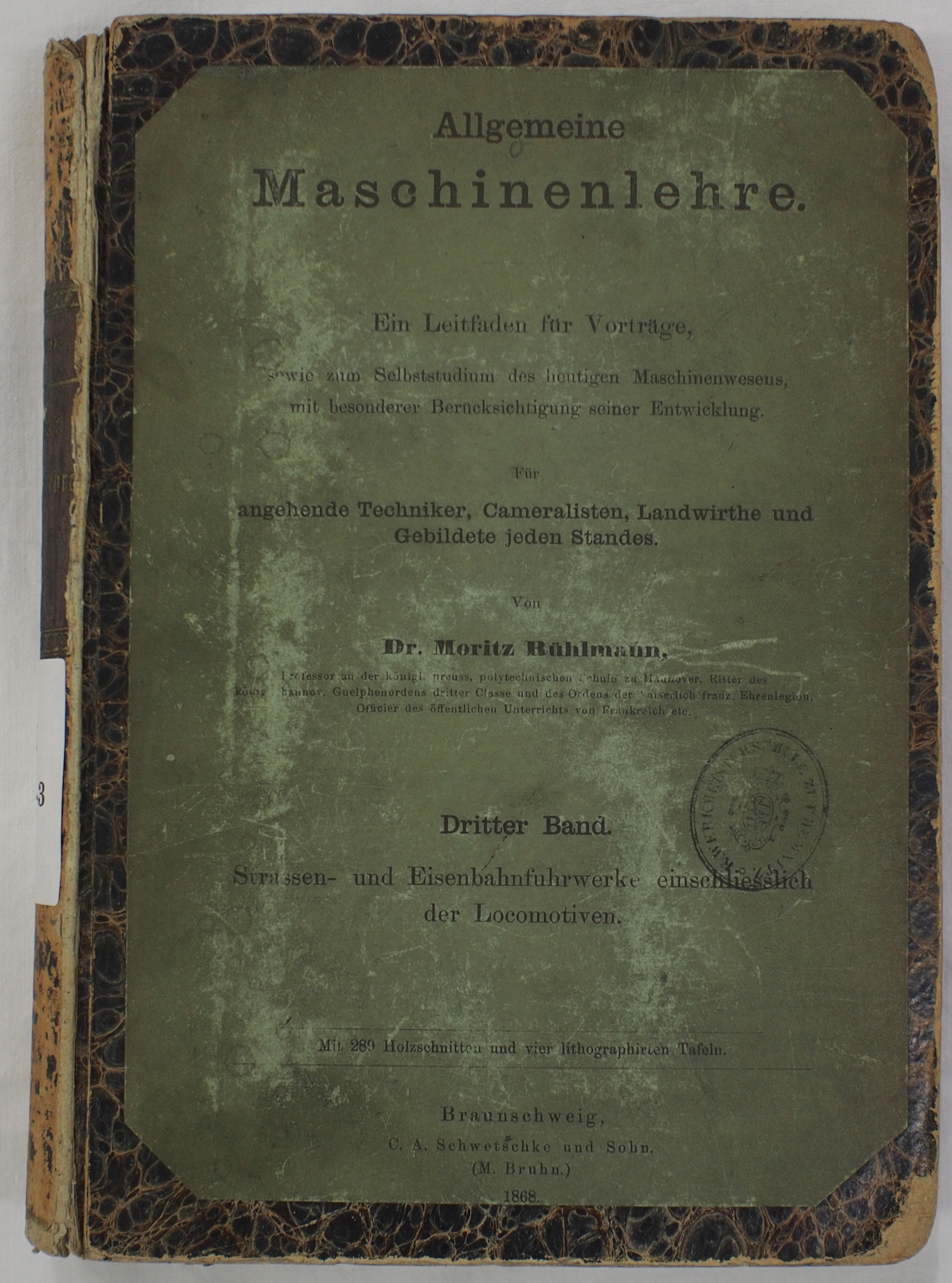 Bd. 3: Strassen- und Eisenbahnfuhrwerke, einschließlich der Locomotiven. Braunschweig 1868.