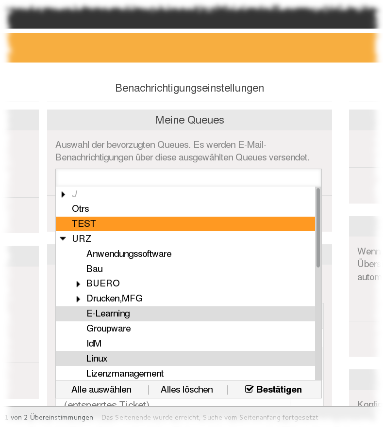 - Neue Multiselect-Methode z. B. unter „Einstellungen/Meine Queues“