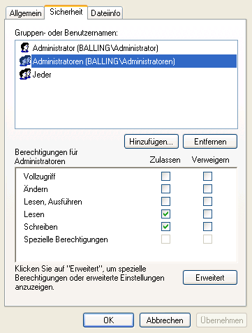 - Abbildung von POSIX-Rechte auf NT-ACLs