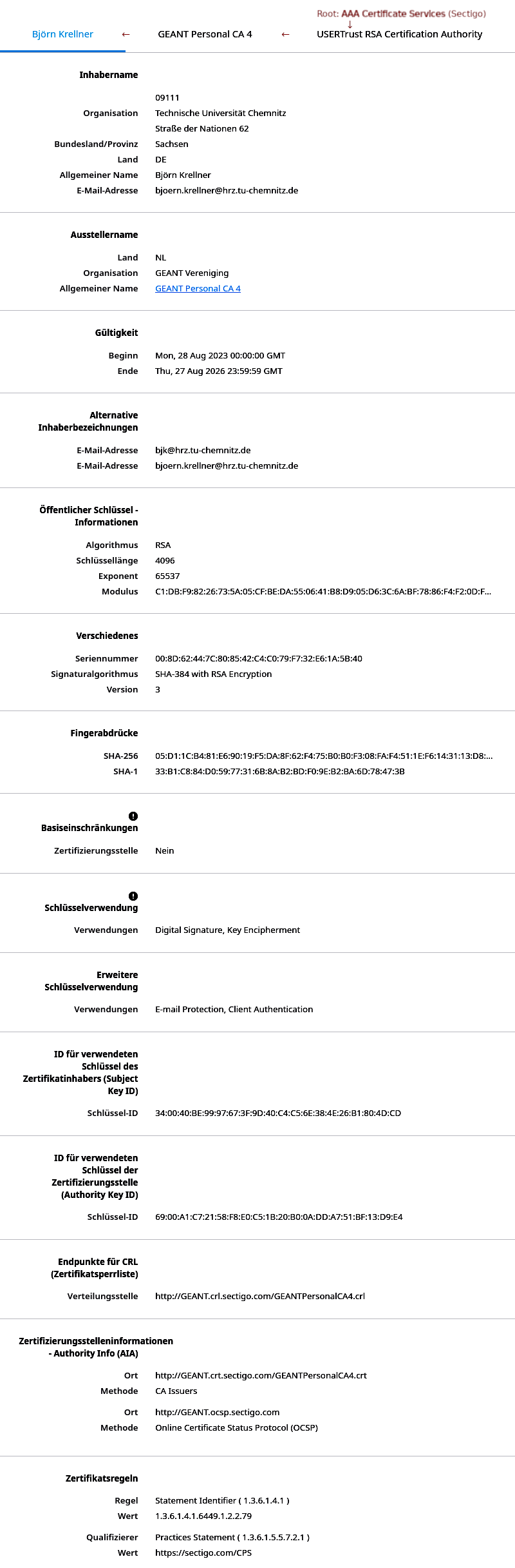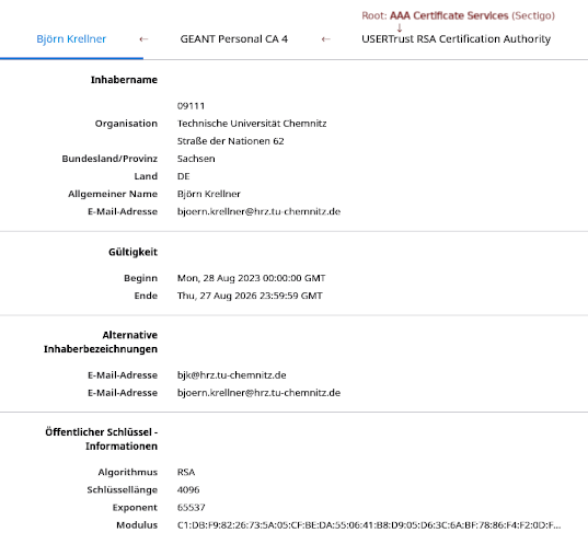 → Schlüssel und Zertifikat gut aufbewahren!