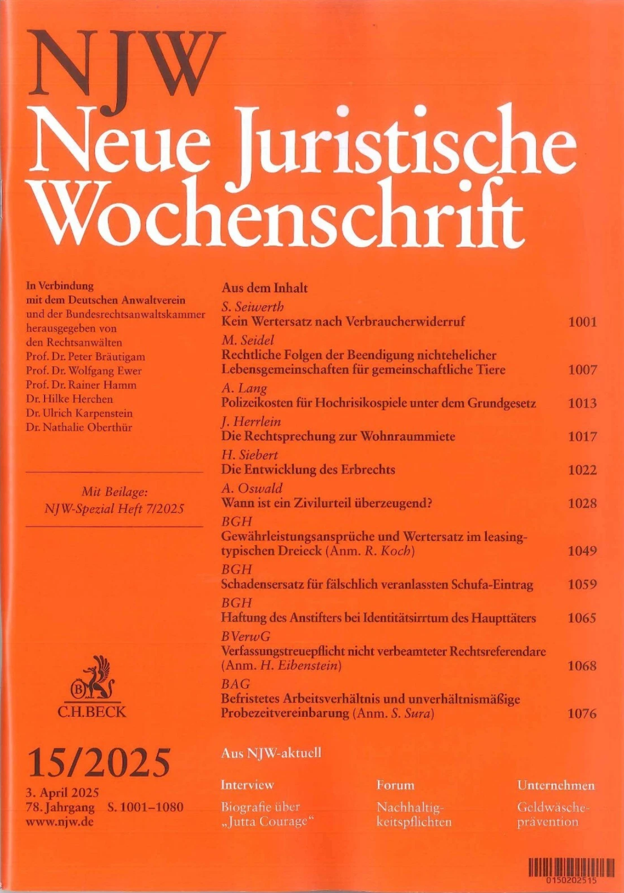 03.04.2025 - Neuer Beitrag, PD Dr. Lang - Polizeikosten für Hochrisikospiele unter dem Grundgesetz, Neue Juristische Wochenschrift (NJW) 2025, 1013 – 1017.