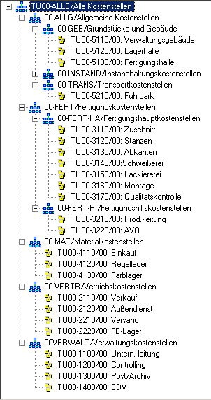 Die Gliederung erfolgte nach betrieblichen Funktionen. Jeder Teilnehmer kann über die Gruppe TU00-ALLE auf "seine" Kostenstellen