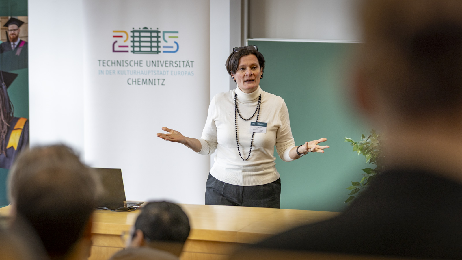 Prof. Dr. Anja Strobel, Direktorin des ZfwN und Prorektorin für Forschung und Universitätsentwicklung der TU Chemnitz, führte durch das Programm. Foto: Jacob Müller