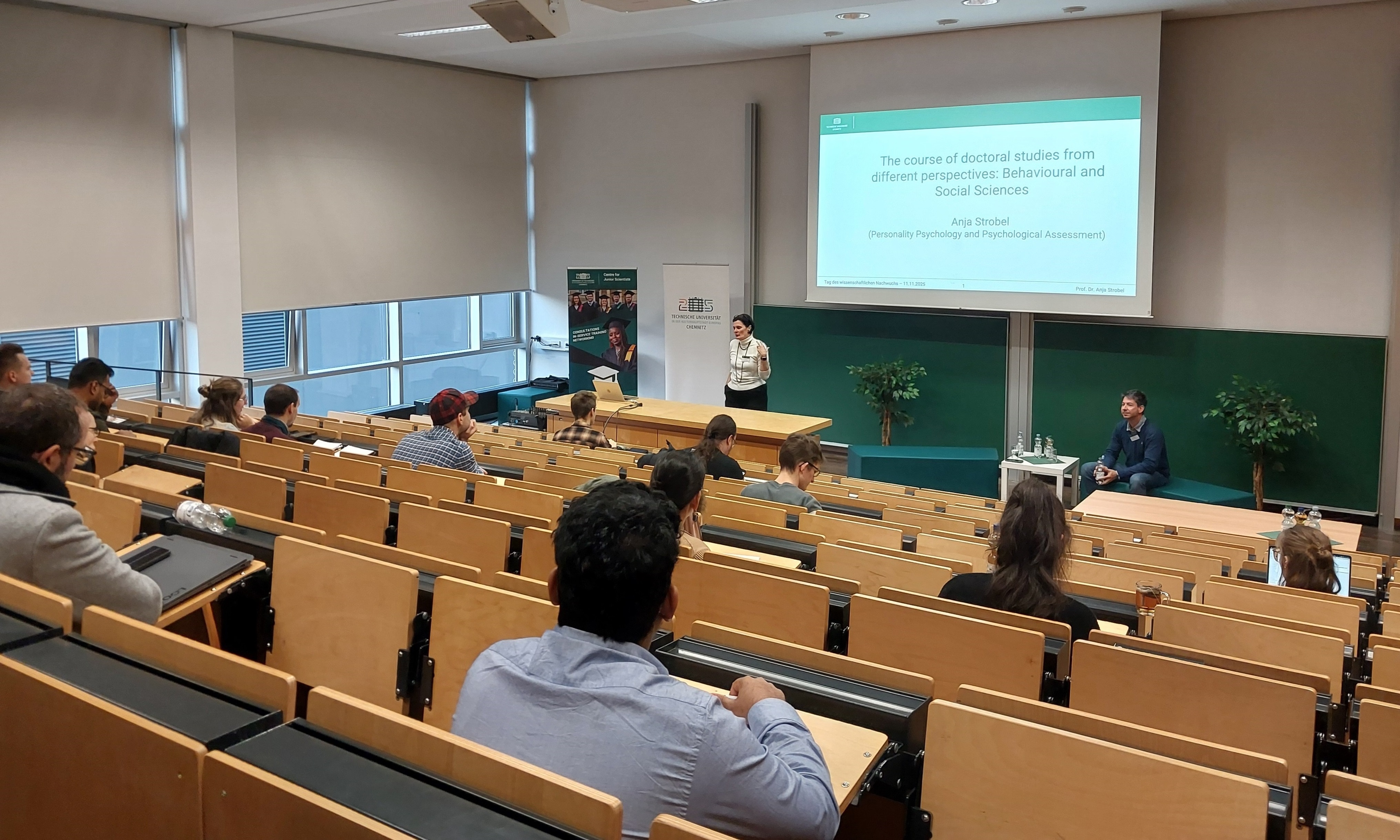 Der späte Nachmittag bot Raum für vertiefende Diskussionen. In der Session „The PhD Journey from different perspectives“ gaben Prof. Dr. Anja Strobel (Fakultät für Human- und Sozialwissenschaften) und Prof. Dr. Martin Wagner (Fakultät für Maschinenbau) Einblicke in Gemeinsamkeiten und Unterschiede verschiedener Promotionskulturen.