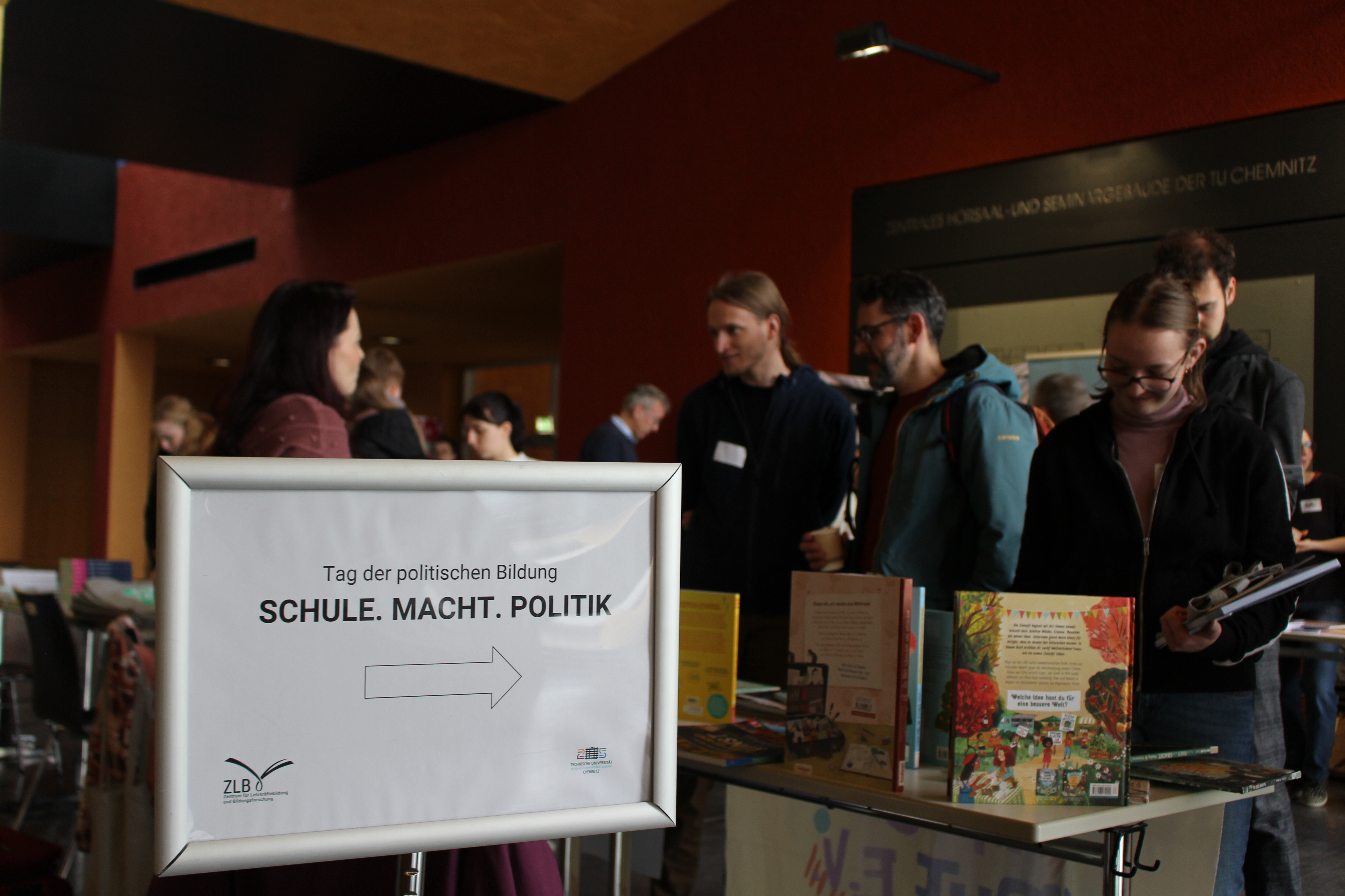 Unter dem Titel „SCHULE. MACHT. POLITIK. – Bildung zwischen Neutralität und Verantwortung“ fand am 31. März 2026 der 2. Aktionstag für Politische Bildung an der Technischen Universität Chemnitz statt. Im zentralen Seminar- und Hörsaalgebäude kamen rund 80 Lehrkräfte aus ganz Sachsen sowie Lehramtsstudierende der TU Chemnitz zusammen, um sich mit Akteurinnen und Akteuren der Politischen Bildung auszutauschen und Impulse aus Wissenschaft und Praxis zu erhalten. Organisiert hatte den Aktionstag ein interdisziplinäres Team mit Prof. Dr. Leena Bröll, Dr. Aline Haustein, Marlen Rössel sowie Kristin Schaller aus dem Sachunterricht.